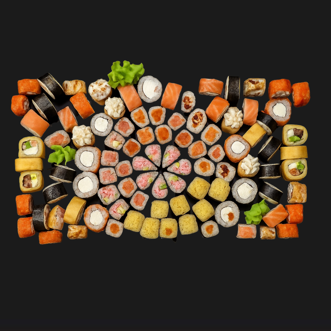 Филадельфия Classic-2 порции, Красный дракон, Чикен, Дракон, Эби, Калифорния с лососем V2.0, Конфуций, Гауда, С лососем, С копчёным угрём, Классический, Горячая мексика с языком, Футо, Томаго