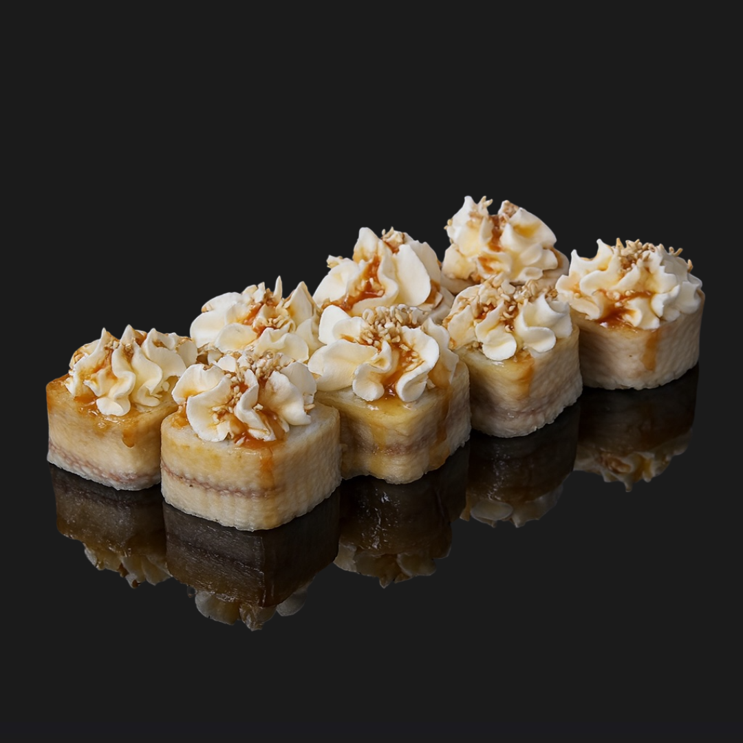 У этого ролла особенный вкус. Жареный угорь и сочная тигровая креветка, свежий огурец, лист салата, кунжут под сливочно-сырным муссом в сладковатом соусе Унаги