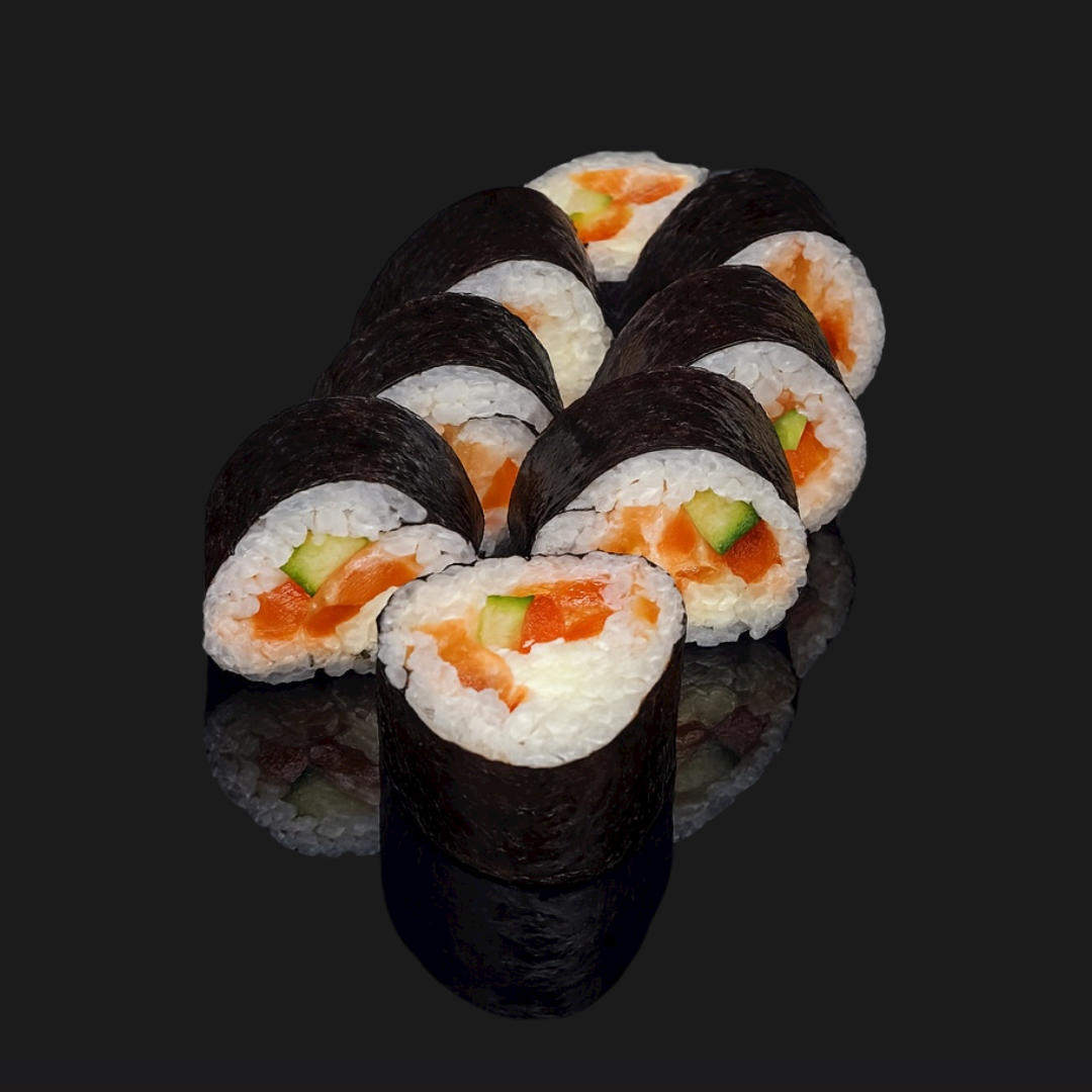 Свежее сочетание нежного лосося, сочного болгарского перца, огурца, сливочного сыра и пикантного соуса Спайси