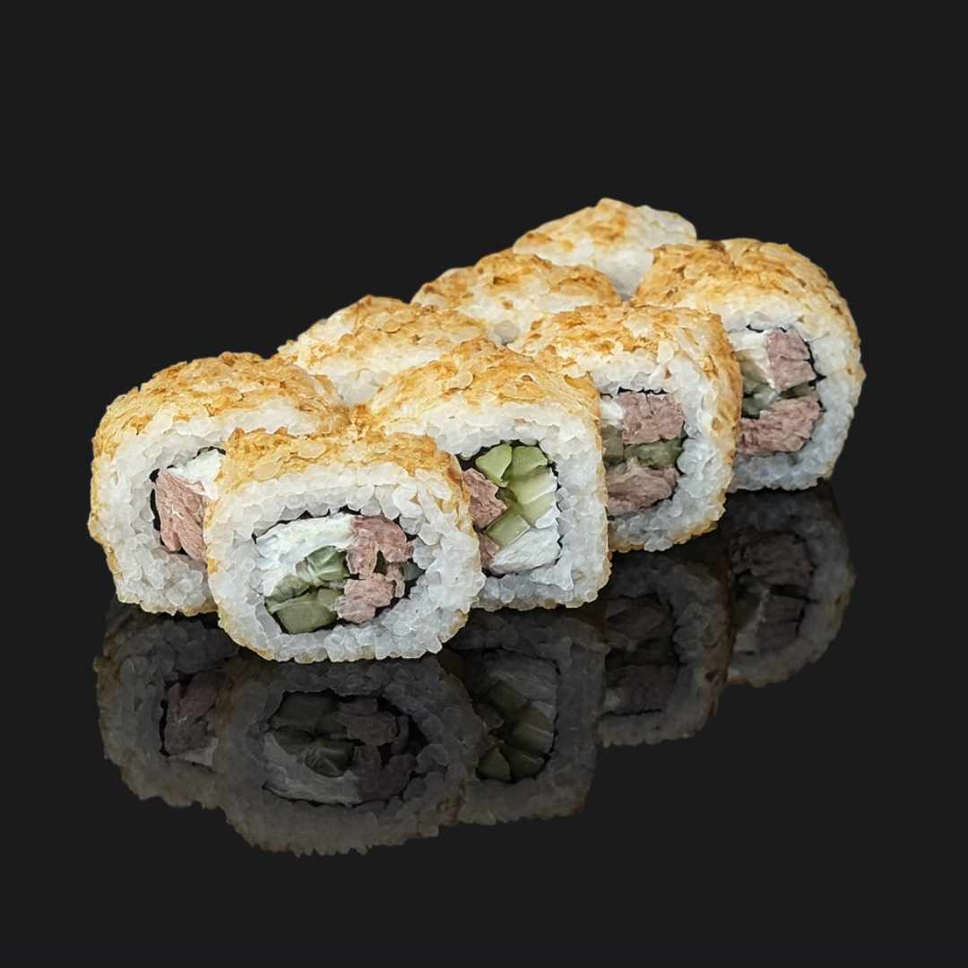 Сочный бекон, творожный сыр, огурец, укутан в хрустящий лук фри