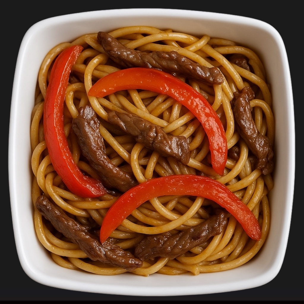 Говядина, Пшеничная лапша, овощи, соус Тонкацу