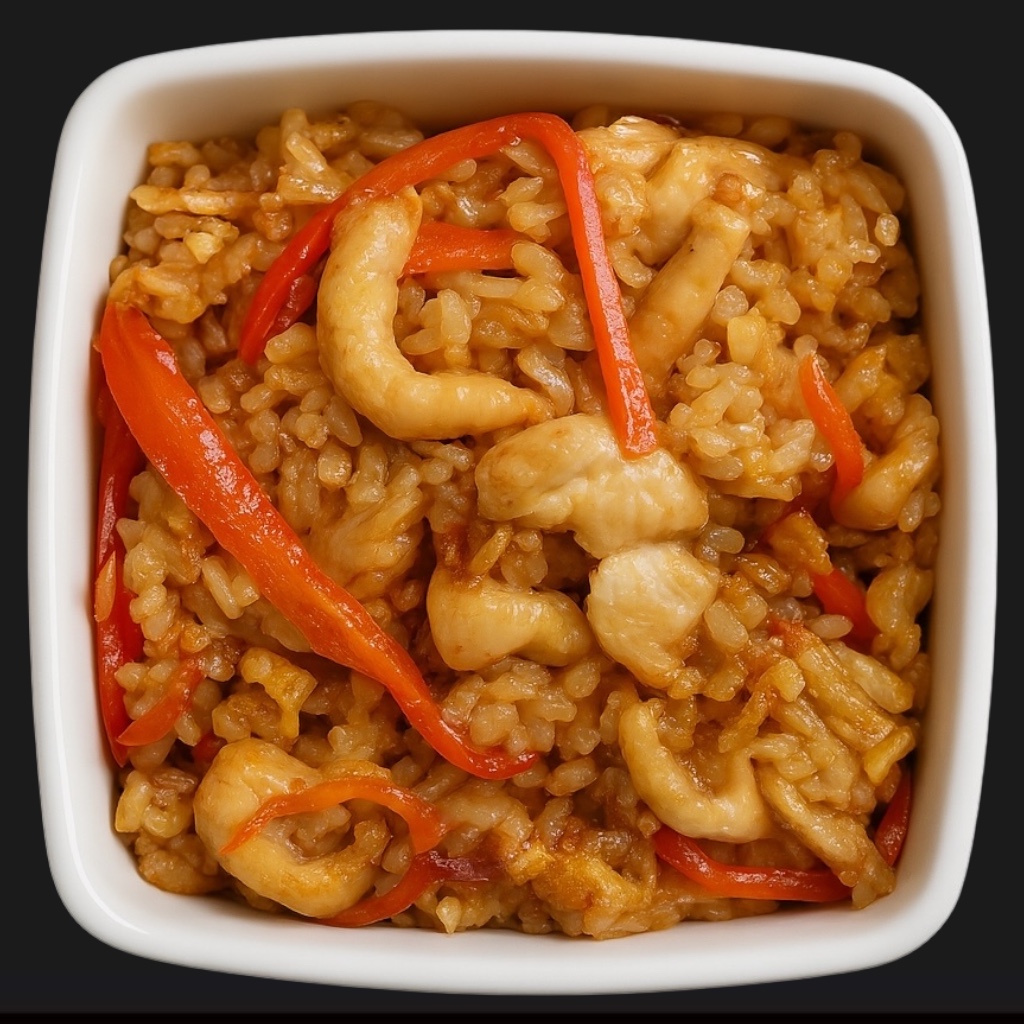 Куриное филе, паровой рис, овощи, устричный соус